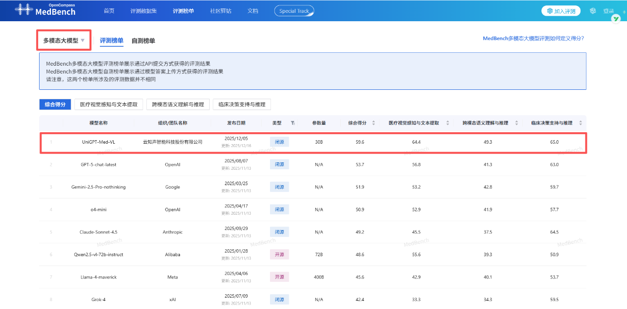 UniGPTMedVL则正在医疗众模态大模子评测中以归纳得分59.6分摘得桂冠,领先第二名GPT-5(53.7分)近6分,闪现出绝对本事上风。